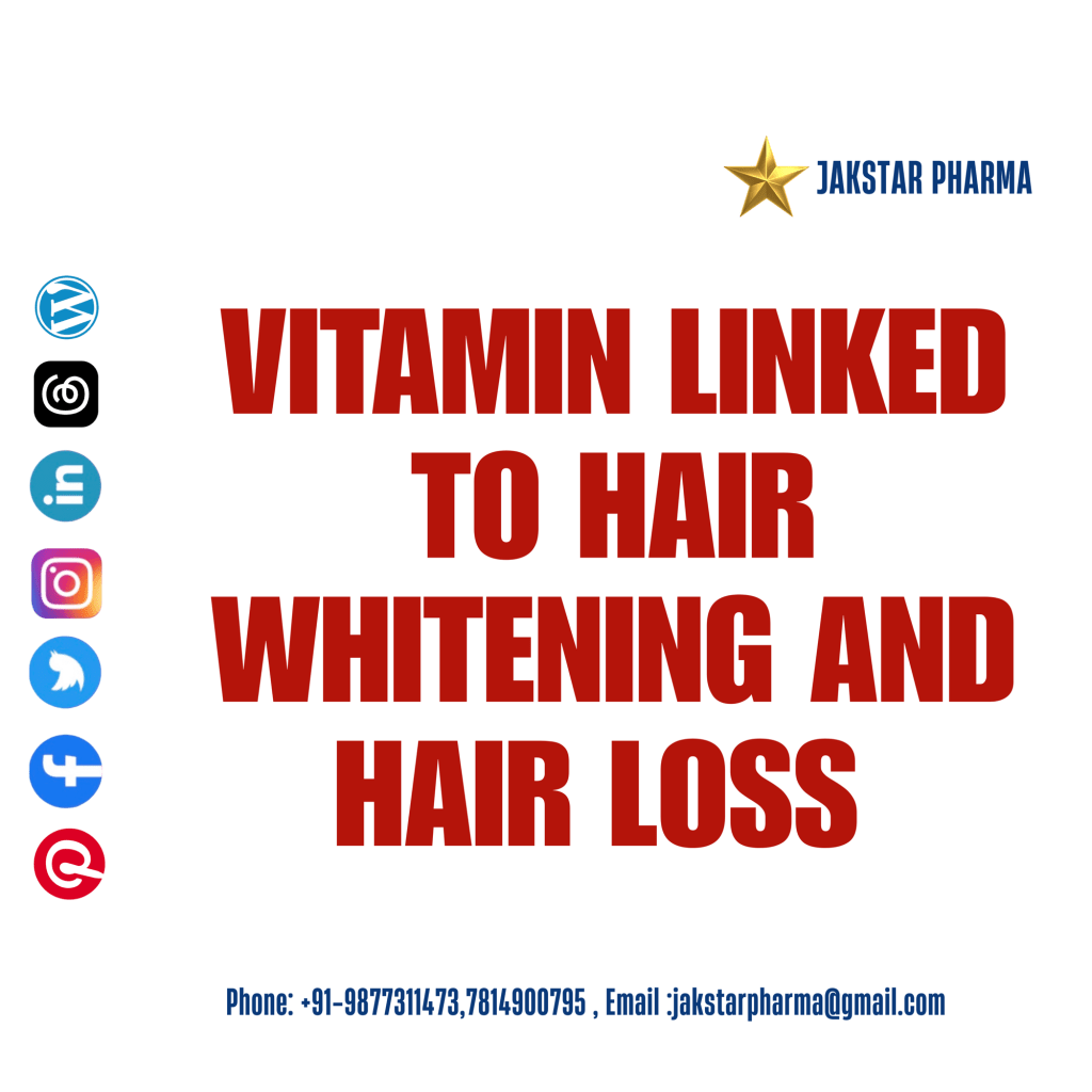 VITAMIN LINKED TO HAIR WHITENING AND HAIR LOSS :Premature or early hair whitening (canities) can have multiple causes, but in terms of vitamin deficiencies, the most implicated ones are Vitamin & Nutrient Deficiencies Linked to Hair Whitening.1) Vitamin B12 (Cobalamin) Deficiency:Most strongly associated with premature graying.B12 deficiency leads to impaired melanin synthesis due to defective DNA synthesis in rapidly dividing cells of hair follicles.Several studies show young patients with premature canities often have low serum B12 and sometimes associated pernicious anemia.2)Folate (Vitamin B9) & Vitamin B6:Both are involved in one carbon metabolism and methionine/homocysteine cycles necessary for normal melanogenesis.Deficiencies can disrupt pigment production.3)Vitamin D3:Emerging evidence links low vitamin D3 with hair loss and pigment changes.Vitamin D receptor signaling in follicular melanocytes is important for pigment retention.4)Vitamin E:Deficiency leads to increased oxidative stress in follicles.Since oxidative stress is a major factor in hair graying (hydrogen peroxide buildup in follicles), antioxidants like Vitamin E protect melanocytes.