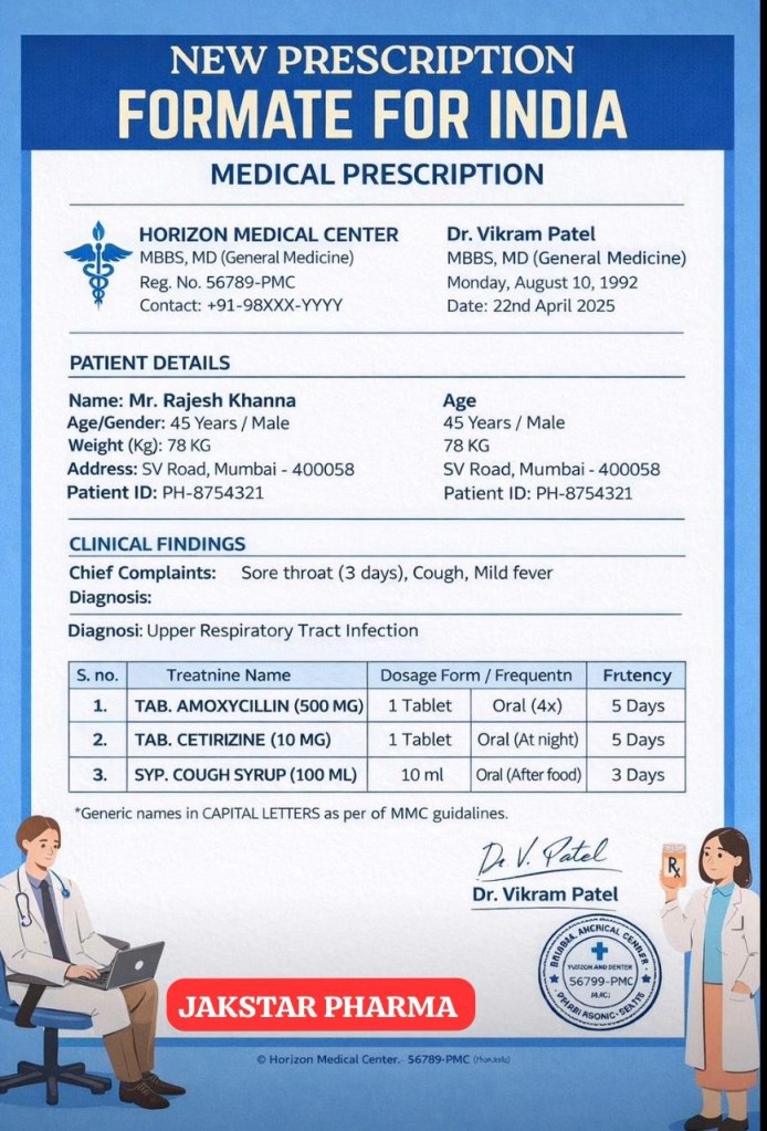 Starting 2026, the National Medical Commission (NMC) has mandated a standardized prescription format for doctors across the country. This reform aims to reduce medication errors, improve transparency, and strengthen trust between doctors, pharmacists, and patients.
